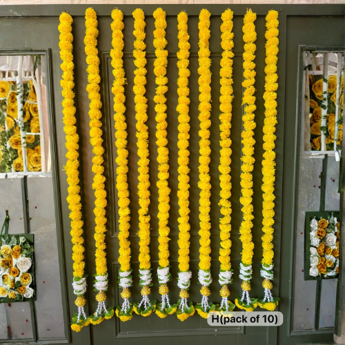 Bright Yellow Marigold Toran Strings – Pack of 10 | Decorative Door Hanging Set