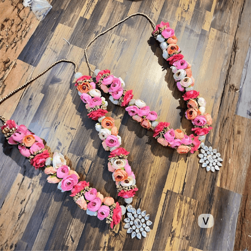 Be the first to review “Pink Peach Floral Wedding Varmala Set (Pack of Pair)” Cancel reply